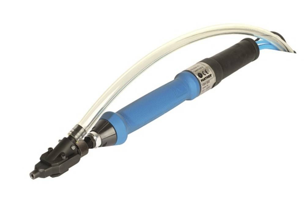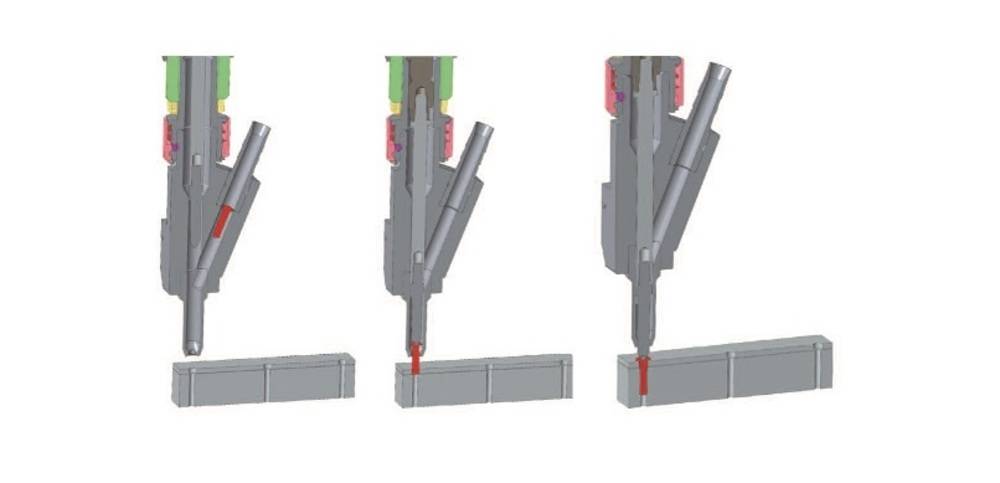 Die Schraube steht fest vorstehend aus dem Mundstück heraus und kann somit gegen die Schraubstelle gedrückt werden ohne dass diese ins Mundstück zurückgedrückt werden kann. Wird der Schrauber mittels der Startleiste gestartet führt dieser den Schraubhub aus. Somit ist eine berührungslose Verschraubung, ohne Kontakt zwischen Mundstück und Bauteil, möglich. Dies ermöglicht auch das einfache Finden der Schraubstelle und bei Bedarf ermöglicht es auch ein Fügen der Bauteile.